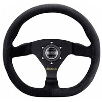The Sparco Ring L360 is a black, 3 spoke flat dish steering wheel available in suede or leather, with a slightly flattened race style bottom - helps with leg room and access to the car, and looks great ! Leather or suede finish.